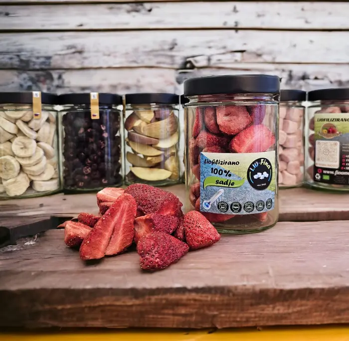 Leta 2022 smo začeli z liofilizacijo sadja ter zelenjave. Naši liofilizirani izdelki so izključno iz sadja, ki ga pridelamo sami oziroma kupimo pri lokalnih kmetijah, razen sadja, ki ne uspeva na našem podnebju. Liofilizirane izdelke prodajamo pod blagovno znamko Lio Fina.